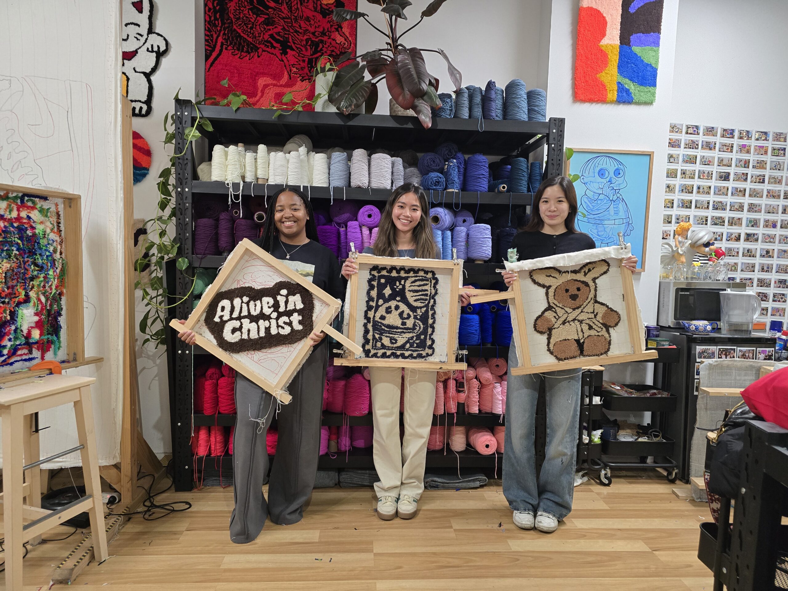Hãy tưởng tượng những cuộn len đầy màu sắc, súng đục kim (punch-needle), và những tấm thảm do chính tay (và trái tim) bạn làm ra. Hoàn hảo cho: